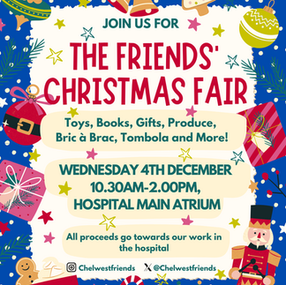 The Friends had our most successful festive season for a decade in 2024, with the Christmas Fair, Christmas card sales and Raffle raising more than £8,500 for our work in the hospital. We are so grateful to everyone who helped with these events, including our Fair volunteers, Christmas card sellers, and in particular Peter Androu from the Transport department for all his assistance with selling raffle tickets.